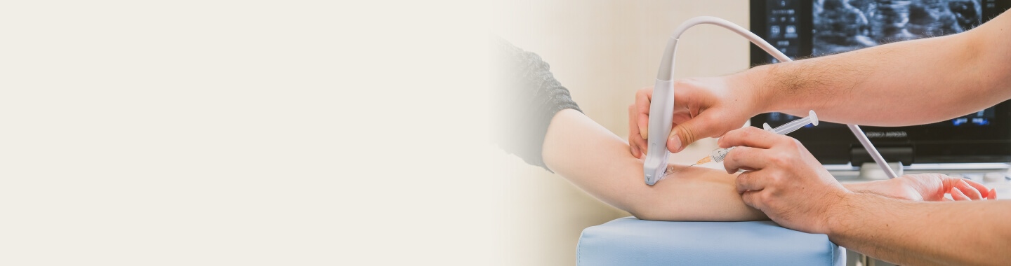 局所麻酔を行った後、エコーで確認しながら細い針を動脈に挿入し、薬液を注入します。
